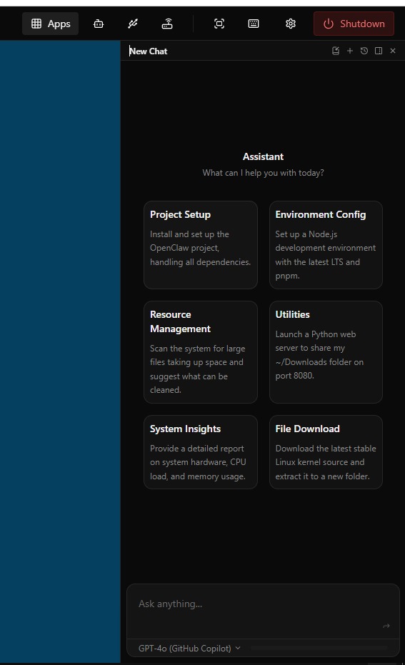The assistant executes the commands, shows you the output, and explains what it did. You can interrupt, correct, or refine at any point. It is not a chatbot that gives you a README to follow — it does the work.